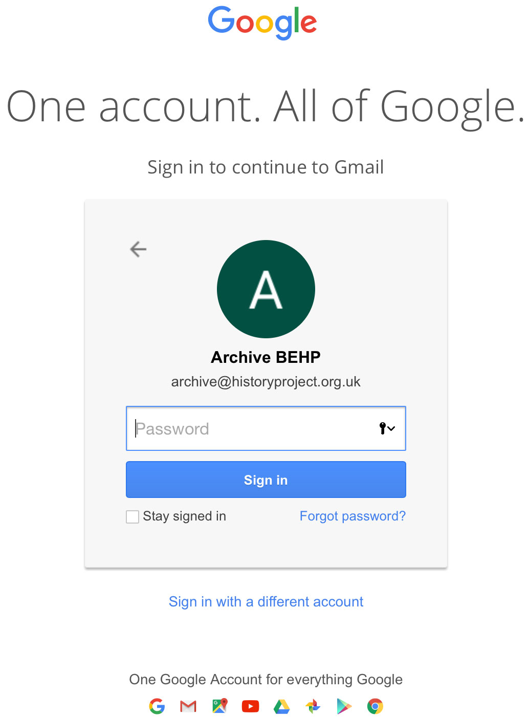Enter the email address: archive@historyproject.org.uk and click ‘Next’. You will then see the following screen.